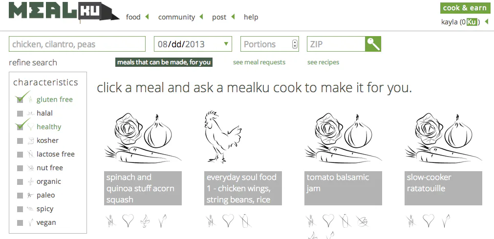 А для тех, кто заказывает еду или просто готовит, чтобы заработать кредиты на получение других блюд, Mealku в итоге оказывается выгодным обменом. Выбор огромен: от изысканных блюд до домашней “комфортной” еды, с возможностью выбирать только те блюда, которые соответствуют вашим диетическим ограничениям. Вот как выглядит интерфейс сайта Mealku: